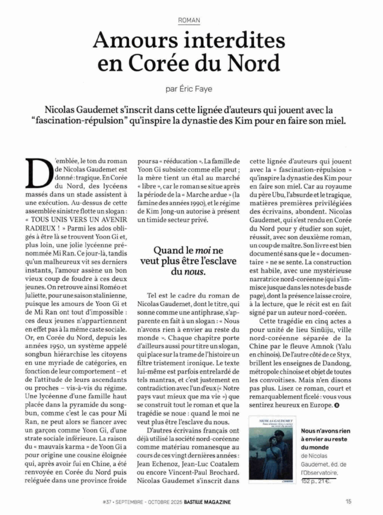 « Un coup de maître », Eric Faye, Bastille Magazine