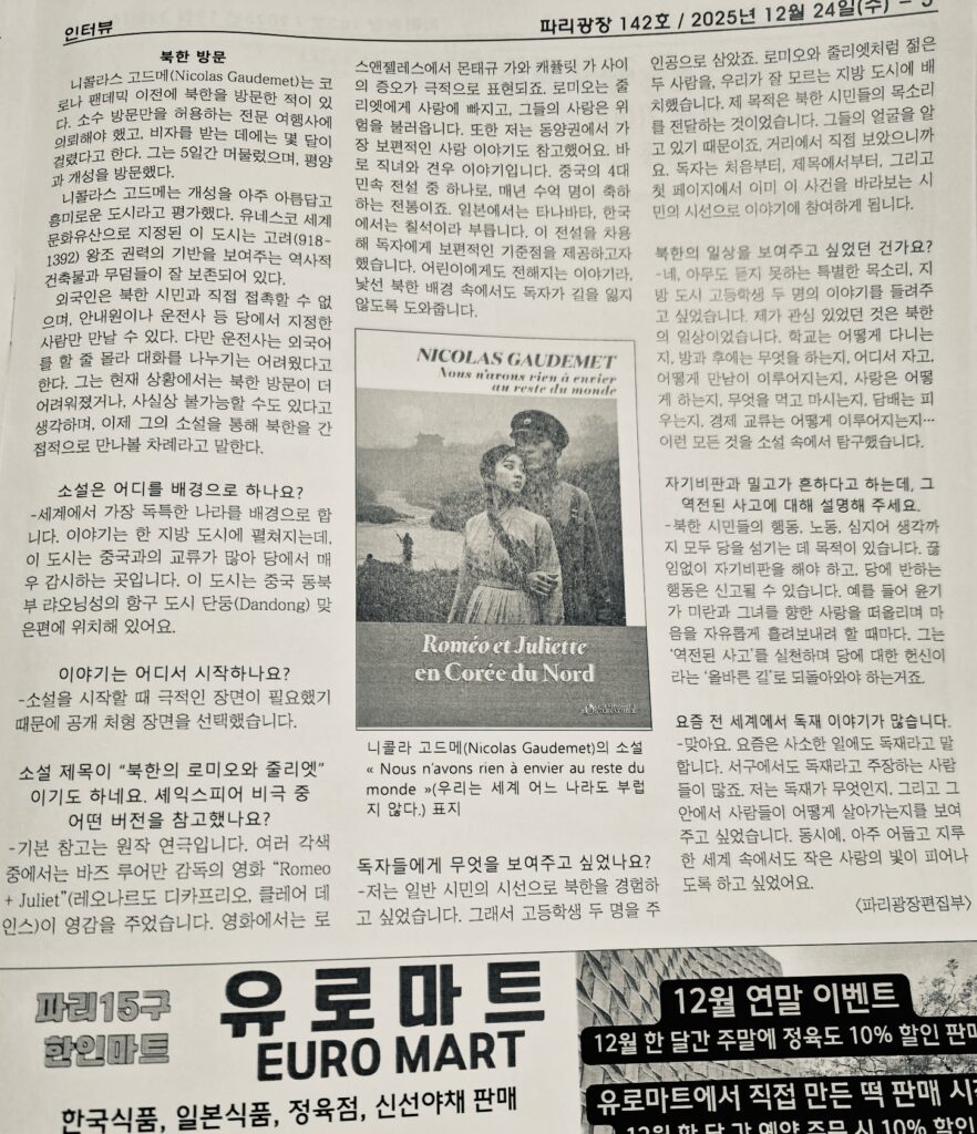 북한의 로미오와 줄리엣 소설 발간한 프랑스 작가, 니콜라 고드메, Place de Paris